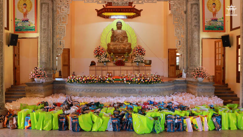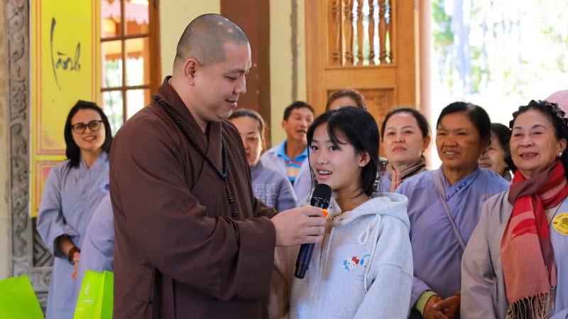 Ngày thứ hai, đoàn trở lại chùa Phước Huệ để dùng sáng, sau đó di chuyển đến chùa Khuông Việt tại xã Lạc Dương, tỉnh Lâm Đồng để tác bạch cúng dường và trao tặng 200 phần quà gồm gạo, hiện kim và các nhu yếu phẩm thiết yếu gửi đến bà con có hoàn cảnh khó khăn.