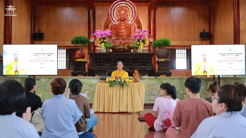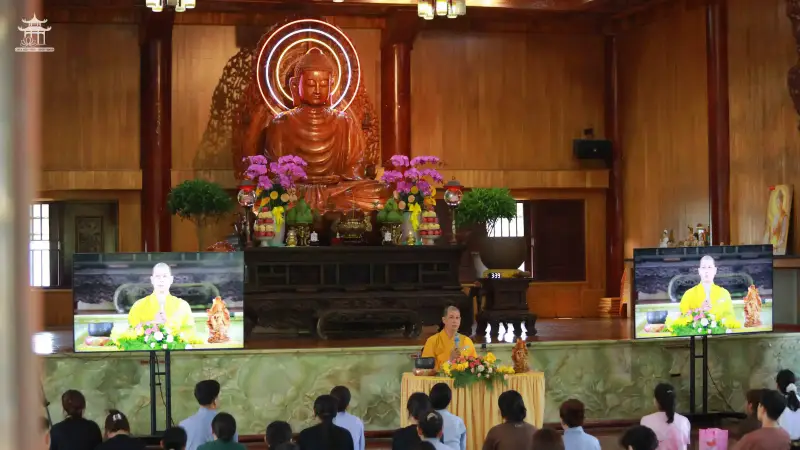 Tiếp đó, đại chúng được lắng nghe thời pháp thoại với chủ đề “Hạnh Nguyện Bồ Tát Quán Thế Âm” do Đại đức Thích Thiện Thật thuyết giảng. Qua những lời chia sẻ sâu sắc và gần gũi, quý Phật tử hiểu thêm về hạnh nguyện từ bi, tinh thần nhẫn nại, bao dung và cứu khổ ban vui của Đức Bồ Tát Quán Thế Âm, từ đó biết ứng dụng vào đời sống tu học hằng ngày.