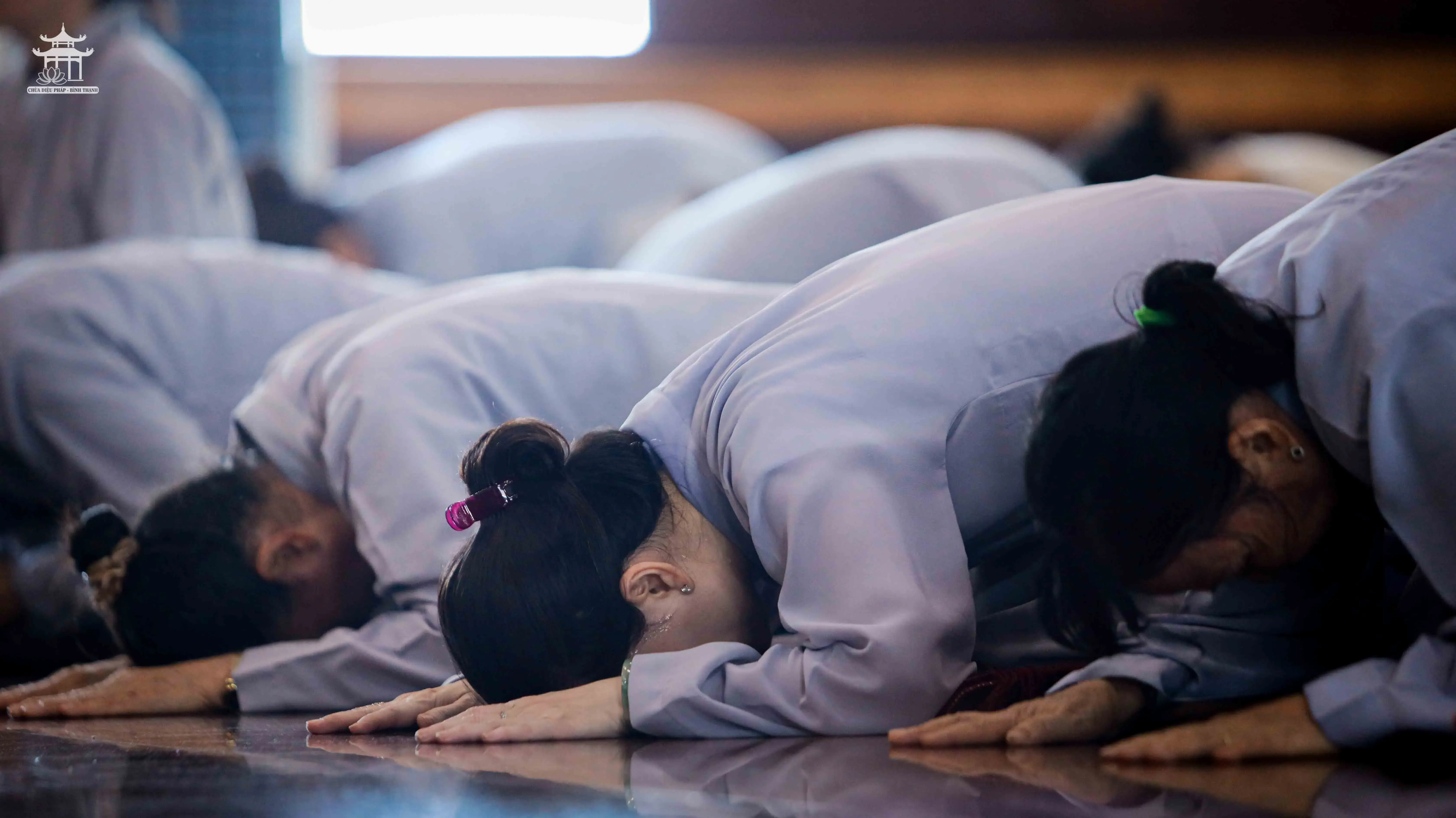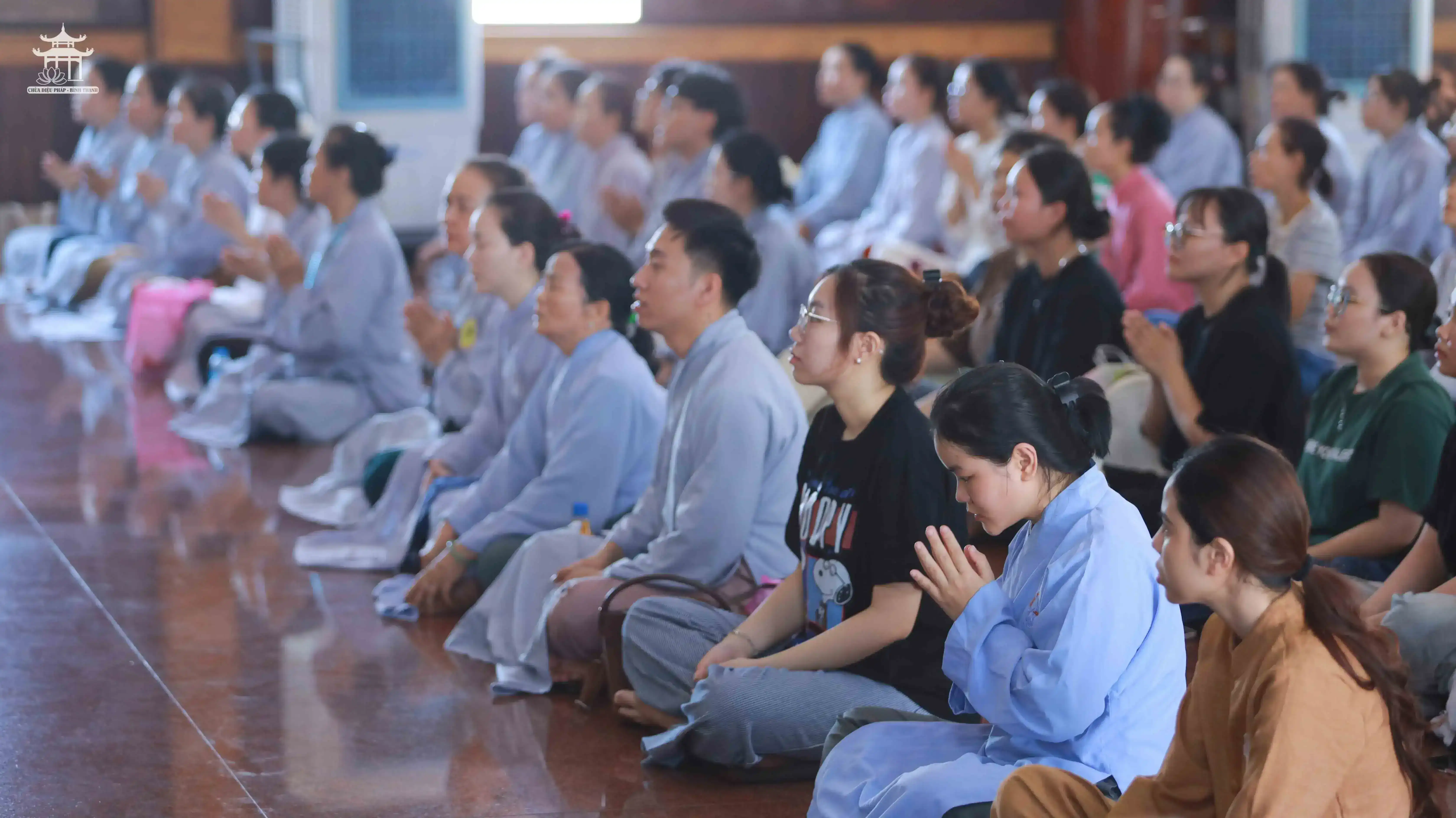 Mở đầu buổi lễ, tại Đại Hùng Bửu điện, dưới sự chứng minh của chư Tăng chùa Diệu Pháp, quý Phật tử đã đồng tụng Kinh Phổ Môn và thành kính đảnh lễ 200 lạy trong pháp Lạy Ngũ Bách Danh. Trong từng câu kinh, từng danh hiệu Bồ Tát được xưng niệm, đại chúng nhất tâm hành trì, thể hiện lòng tôn kính và nguyện học theo hạnh lắng nghe, cứu khổ của Đức Quán Thế Âm.