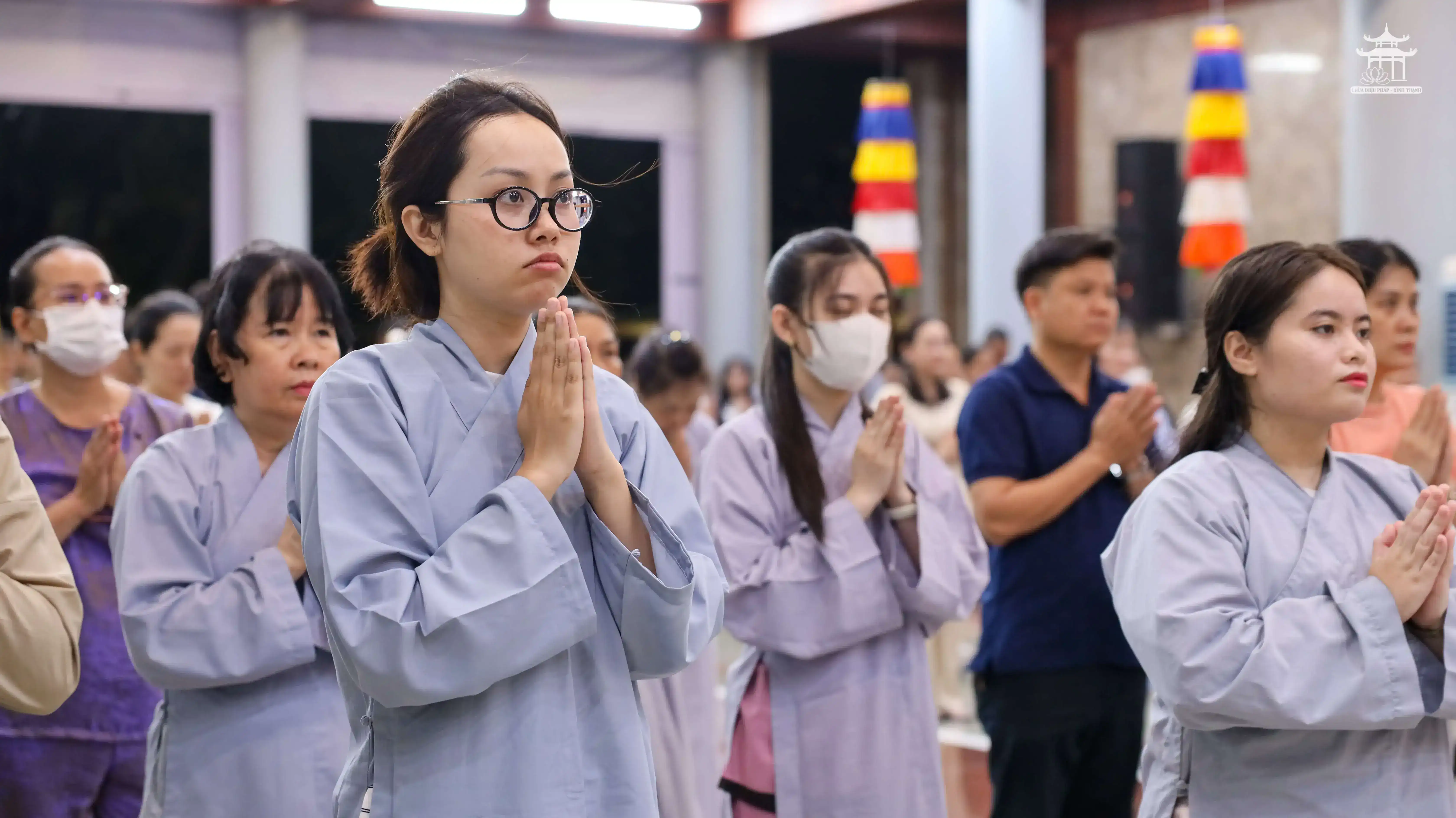 Cùng ngày vào buổi tối, chùa Diệu Pháp trang nghiêm tổ chức khóa lễ kết đàn Dược Sư, khép lại thời tụng kinh Dược Sư đầu năm.
