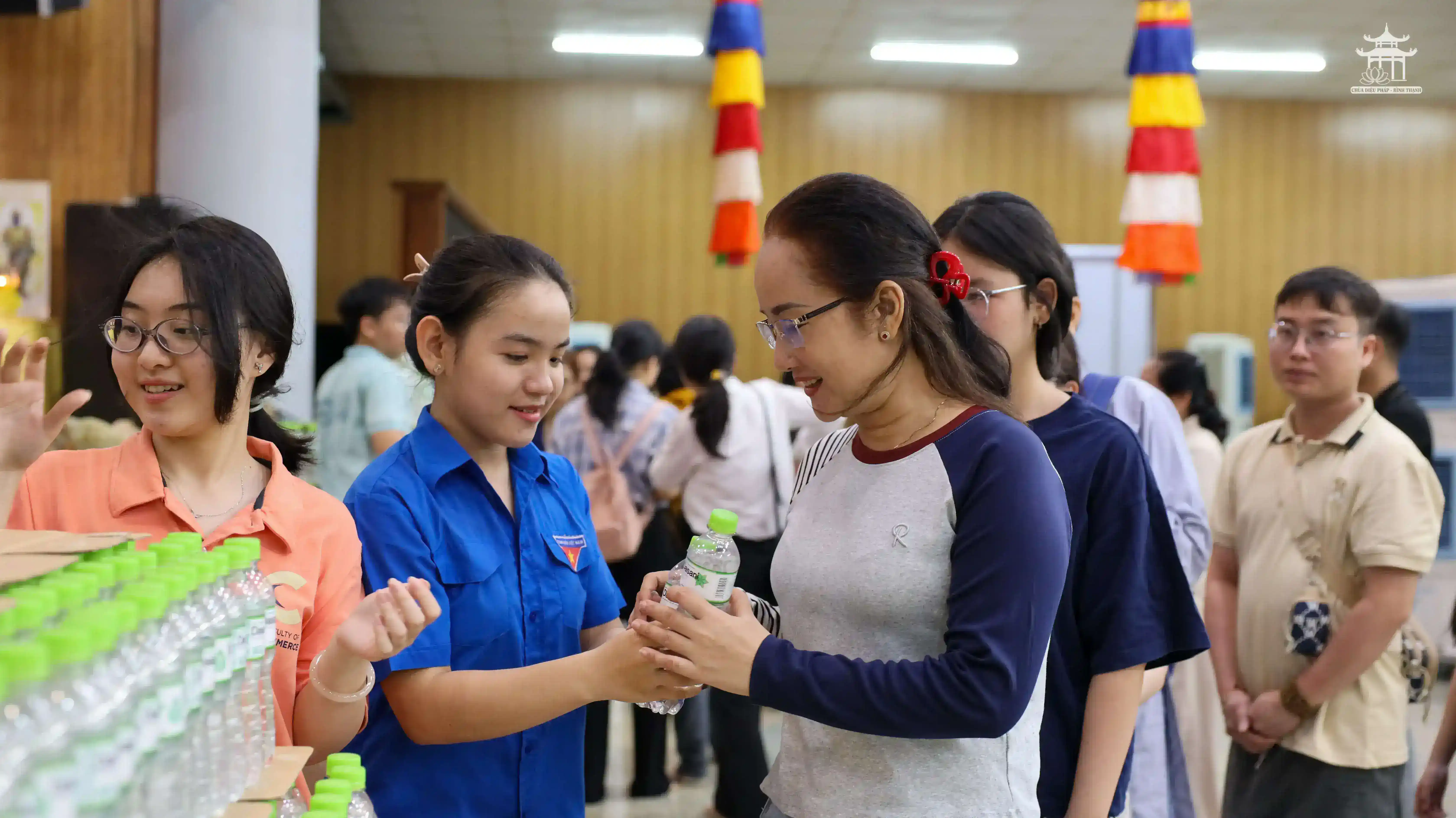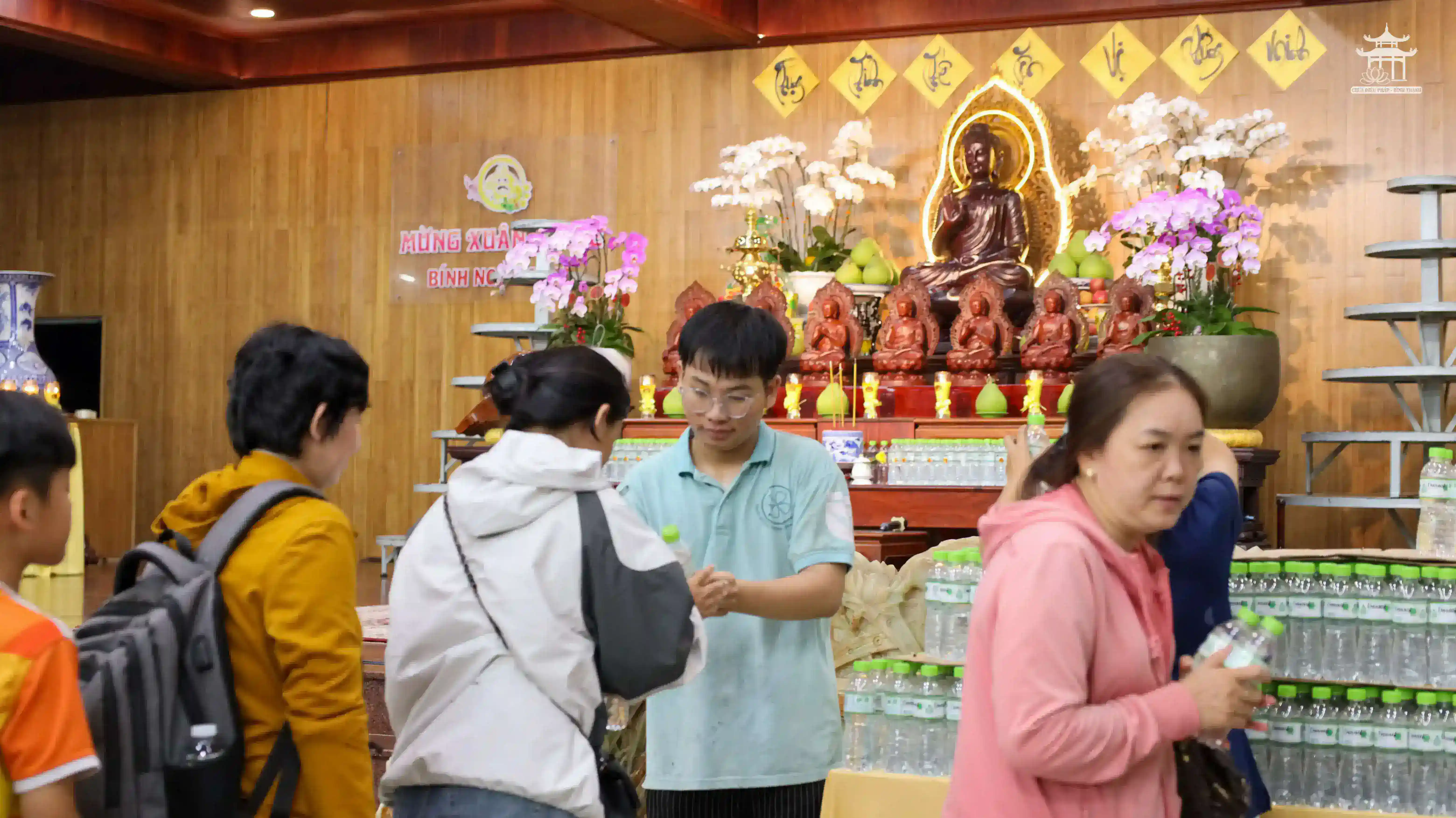 Sau khóa lễ, các chai nước Dược Sư đã được chư Tăng và Phật tử chú nguyện trong thời gian qua được trao tặng đến tất cả quý Phật tử về viếng chùa.